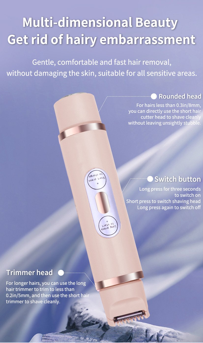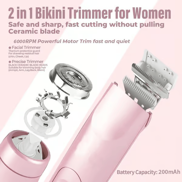 Dual Head Functionality:Â The dual head design offers effortless trimming and shaving, making it perfect for delicate areas like the bikini line, underarms, and legs.